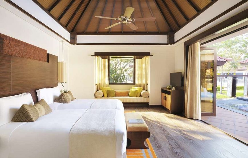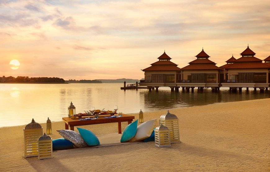 Anantara The Palm Dubai Resort is a luxurious five star resort located on the crescent of the iconic Palm Jumeirah. Surrounded by lush gardens, 293 beautifully appointed rooms and villas are uniquely designed with contemporary Asian flair and overlook the tranquil Arabian Gulf or Palm Jumeirah. Complementing such a prestigious destination, resort facilities are designed with relaxation and luxurious indulgence in mind, and culinary journeys are crafted from a focus on mouthwatering diversity and impeccable tastes. Anantara The Palm Dubai Resort is located on the eastern crescent of Dubai’s Palm Jumeirah. This world famous landmark is located just one kilometre from Sheikh Zayed Road, Dubai’s main arterial route, and consists of a trunk, a crown with 16 fronds and a surrounding crescent island that forms an 11 kilometre long breakwater. The crown is connected to the mainland by a 300 metre long bridge and the crescent is connected to the top of the palm by a subsea tunnel. Accommodation: A collection of 293 rooms and villas are clustered in units of four to eight to maximise privacy, with 130 of these featuring direct access to 10,000 square metres of lagoon pools. Guests desiring the ultimate private haven can choose a One Bedroom Beach Pool Villa with a personal infinity pool, a One Bedroom Over Water Villa poised over the ocean, or a generous Anantara Two Bedroom Beach Pool Villa that offers the pinnacle of luxury and is ideal for families and friends. Room Amenities• Individual climate controlled air-conditioning• Iron and ironing board• Luxurious bedding – down comforters, custom duvets, cotton-rich linens• Down and feather pillows• Personal safe• Tea and coffee making facilities• Mini bar• Interactive 40″ LCD TV• DVD Player• Ipod docking station• Selection of 118 international and local channels• WiFi internet connectionBathroom Amenities• Bathrobe• Bathtub• Separate rain shower• Hair dryer• Make-up mirrorResort FacilitiesDiscover an impressive host of leisure amenities. Keep up your exercise routine with a session in the gym or a tennis match. Swim to your heart’s content with a generous number of exotic pools. Sip refreshing beverages at the water’s edge by day, and inventive cocktails or fine wines in elegant evening settings.