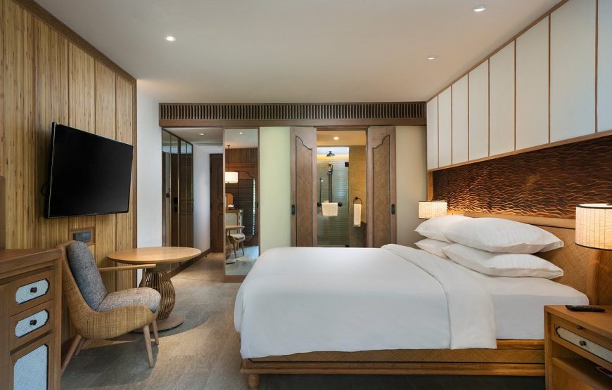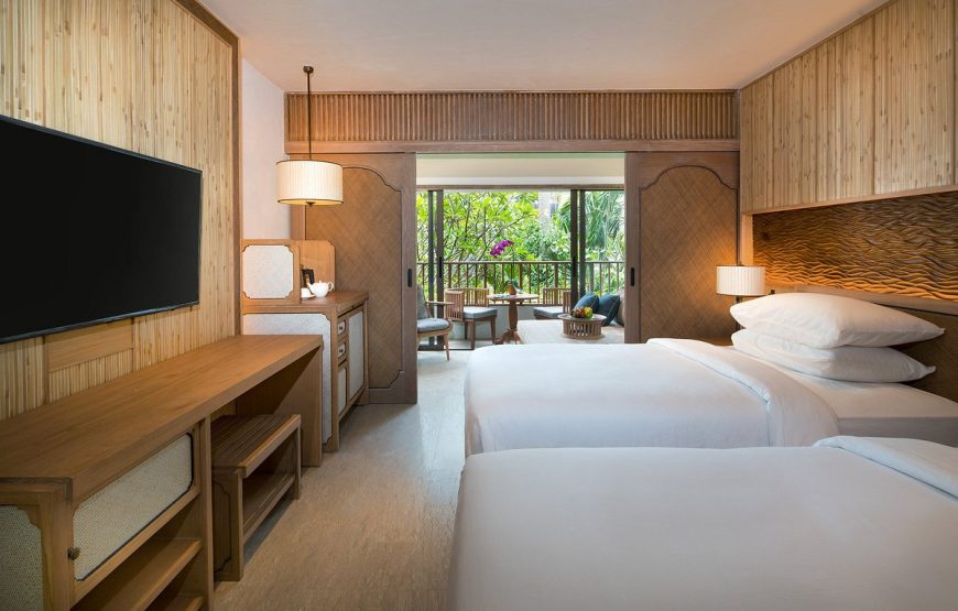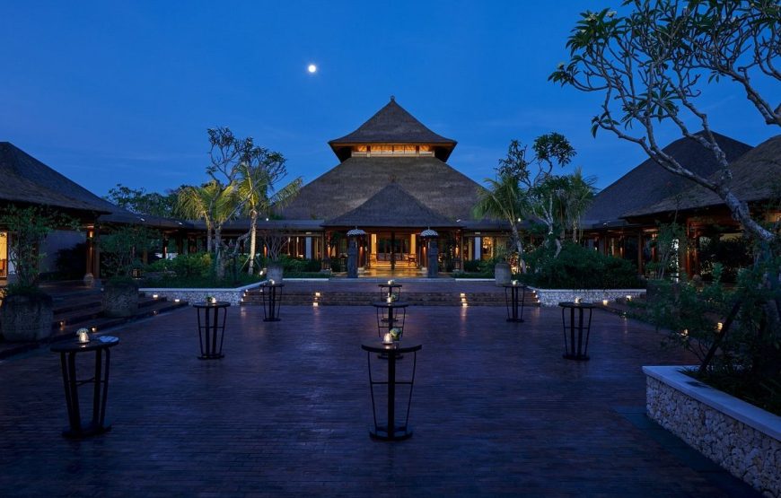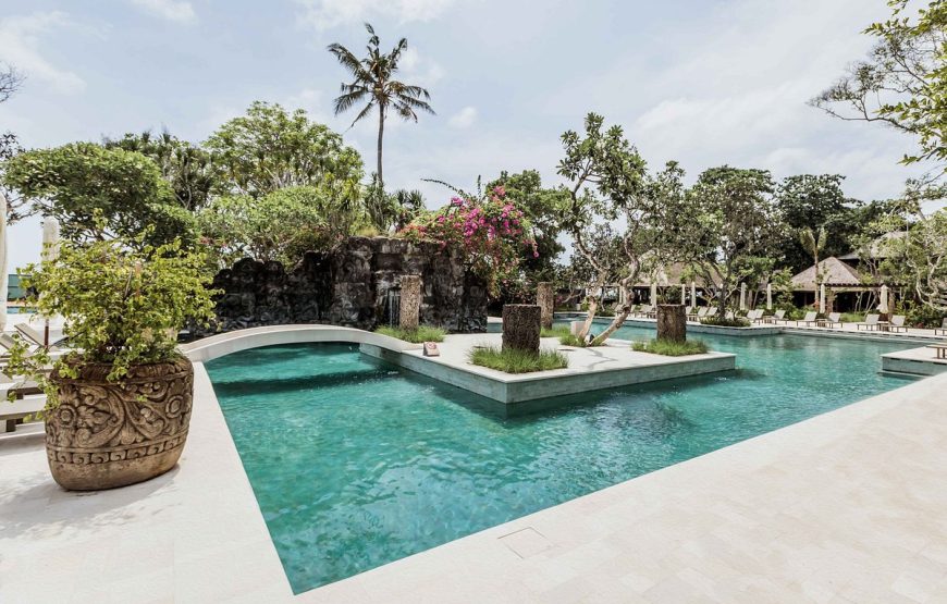 Set on the old site of Bali Hyatt on the main street of Sanur, the hotel is located on a delightful beachfront and nine hectares of lush tropical gardens. Each of 363 rooms is elegantly designed with a modern Balinese touch and overlooks the tranquil gardens or the Indian Ocean. With 3 swimming pools, 500 m of white sandy beach, 2 restaurants and 1 bar, spa complex,and fitness center, Hyatt Regency Bali is an ideal relaxation getaway for couples and families. Located in the heart of Sanur, the hotel is conveniently close to Bali’s main attractions : Kuta (30 minutes), Seminyak (45 minutes), Ubud (1 hour), Jimbaran (40 minutes).
