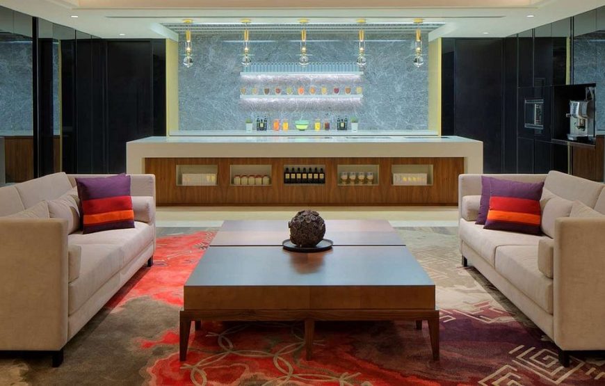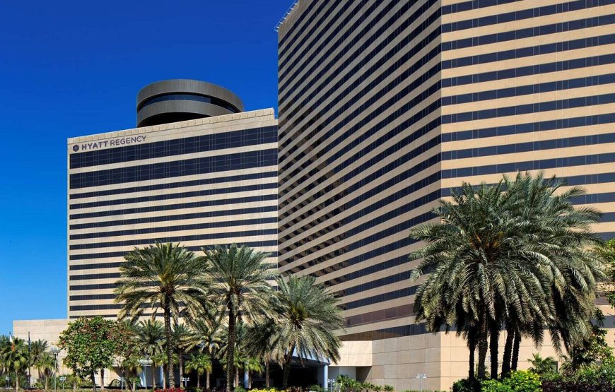 Hyatt Regency Dubai is a 5 star deluxe hotel located in Deira, Dubai’s historical & heritage rich district along the Corniche, a renowned waterfront promenade. Situated within walking distance from the popular gold, spice & textile souks and few minutes away from the Dubai Museum, Abra station and Heritage Village. A metro station near the hotel provides easy access to popular city attractions, shopping malls and the business district. Its 421 spacious guestrooms and elegant suites welcomes business and leisure travelers alike. Guests enjoy modern meeting facilities, complimentary internet access, an extensive fitness centre, spa, an ice skating rink and a choice of three award-winning restaurants serving international cuisines, including Al Dawaar, Dubai’s only rooftop, revolving restaurant as well as Miyako, authentic Japanese restaurant and Helios, a Greek rooftop lounge.
