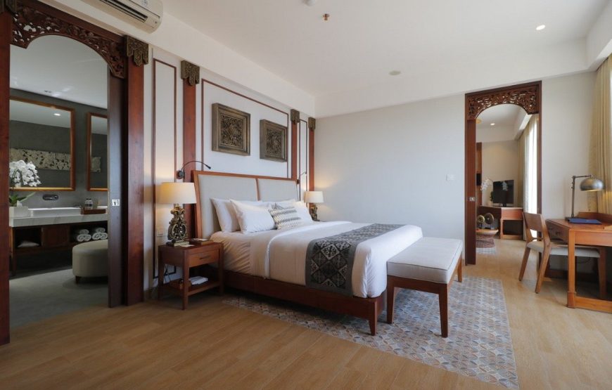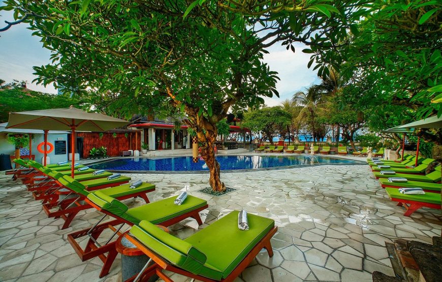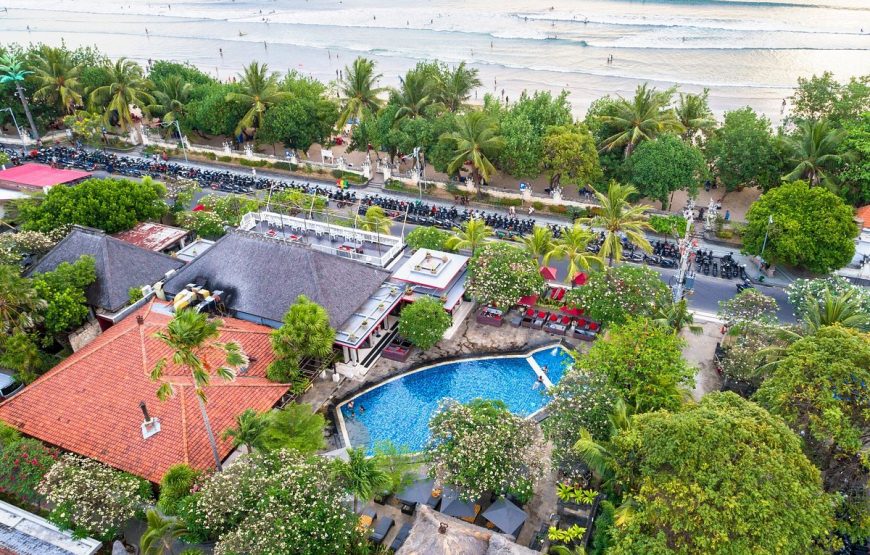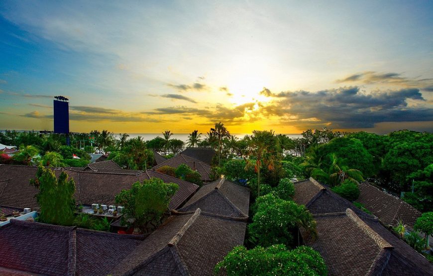 KUTA SEAVIEW Boutique Resort – Bali is strategically located on beach front of the long golden sand of Kuta beach, well known for its surfing and for its magnificent sunsets, provides everlasting bliss for those craving for the perfect holiday under the sun. The resort is set amongst tropical gardens with 91 comfortable guest rooms of your choice from deluxe room as the lowest room category , Deluxe garden, Deluxe facing to sea, Premier Deluxe Cottages , family room ( consist of 1 king size and an extra bed which is ideal for a small family ) , new signature of one bed room suite – family suite with has living room and small complete kitchenette to the new Ocean Suite the highest ones which located on 4th floor where you can see the beautiful of the Kuta Beach and it’s sunset ( is now officially launched ) , all resort rooms , cottages , and suites are furnished in contemporary Balinese architecture and equipped with international standard of room facilities.