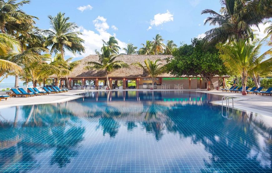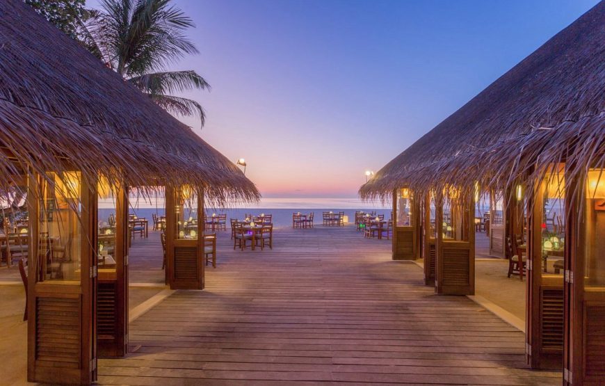 Meeru Island Resort, surrounded by a beautiful lagoon and long stretches of white, sandy beach, is the only Resort on the island of Meerufenfushi, North Male’ Atoll. It is 1200 meters long by 350 meters wide, about 60 hectares (105 acres). Your speedboat transfer from Velana International Airport is a scenic, 55 minute ride. The 284 Rooms include 77 Jacuzzi Water Villas, 27 Water Front Villas, 83 Jacuzzi Beach Villas, 77 Beach Villas and 20 Garden Rooms.