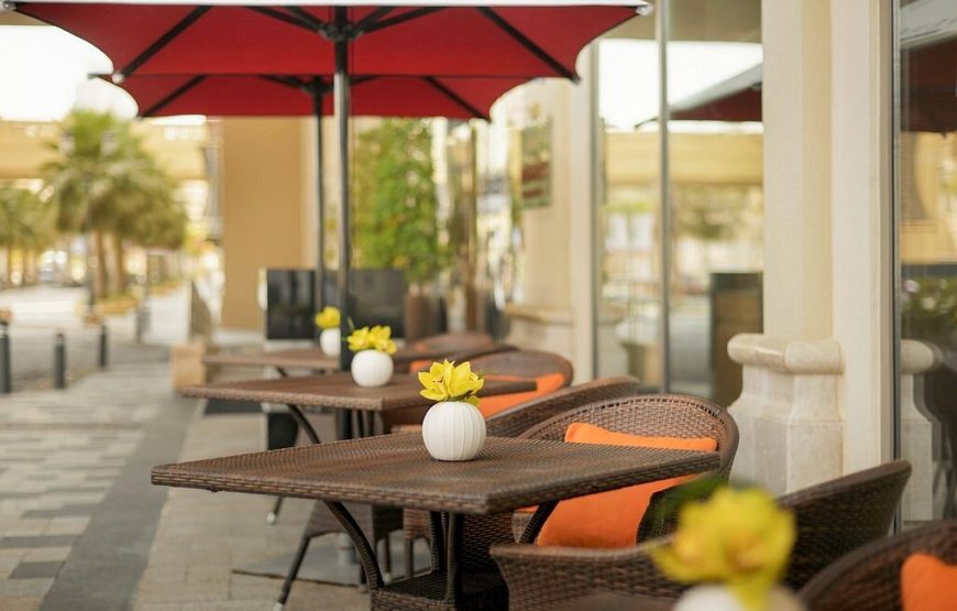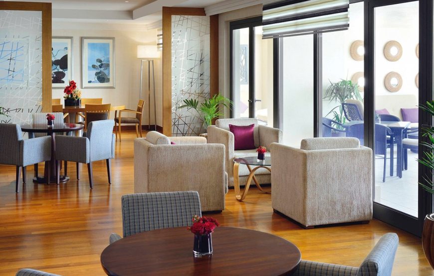 The Mövenpick Hotel Jumeirah Beach lies in the heart of one of Dubai’s most dynamic and lively seaside district, Jumeirah Beach Residence. The hotel is located on The Walk and is just a short walk from ‘The Beach’ mall, which features beachfront shops, restaurants and the UAE’s first outdoor cinema. This 5-star hotel is modern, chic and contemporary all in one, featuring lively dining and entertainment options, expansive recreational and modern meeting, conference and banqueting facilities and is only few steps away from the beach of the stunning Arabian Gulf. Ideally situated only a 30-minute drive from Dubai International Airport, it is one of the best addresses for your stay in Dubai. The city’s thriving business hubs, major attractions and entertainment facilities are all nearby.