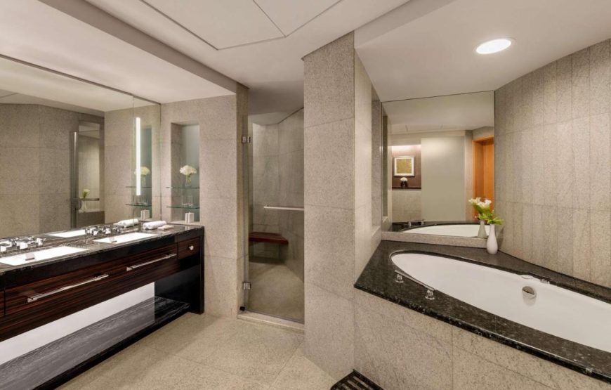 The 302 elegantly appointed guest rooms and suites incorporate geometric design patterns and feature free WiFi, flat-screen TVs, working desks and a fully stocked minibar. The luxury bathrooms feature deep soaking tubs and walk-in showers.
