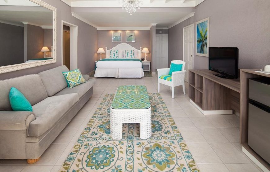 Sugar Bay Barbados is a newly renovated, 138 key, All-Inclusive Resort located on the majestic south coast of Barbados. Sited in the UNESCO World Heritage Garrison Historic Area, this property straddles a magnificent stretch of crystal clear turquoise waters. The lagoon itself is a fantastic swimming area with gentle waves lapping at white and pink sandy shores, sheltered by rows of coconut trees swaying in the trade-winds. Sugar Bay is not only two minutes outside of Bridgetown it is also right on the liveliest coast on island offering easy access to many different activities, places to see and dining opportunities. The Boho-Chic style property offers 5 restaurants* (Sizzle Steakhouse & UMI Japanese included), 5 bars (Including a Pub) with Premium Alcohol Drinks Free. Further, excellent kids facilities, lush tropical gardens, spa, Crossfit stylized gym, hair-salon, arcade and so much more is just waiting for you to visit and explore this island in the sun! *Our newest addition Blush Cafe, the “most instagramable cafe in Barbados” opened in January of 2021! Be sure to checkout their offering which is a limited part of the Resort package!