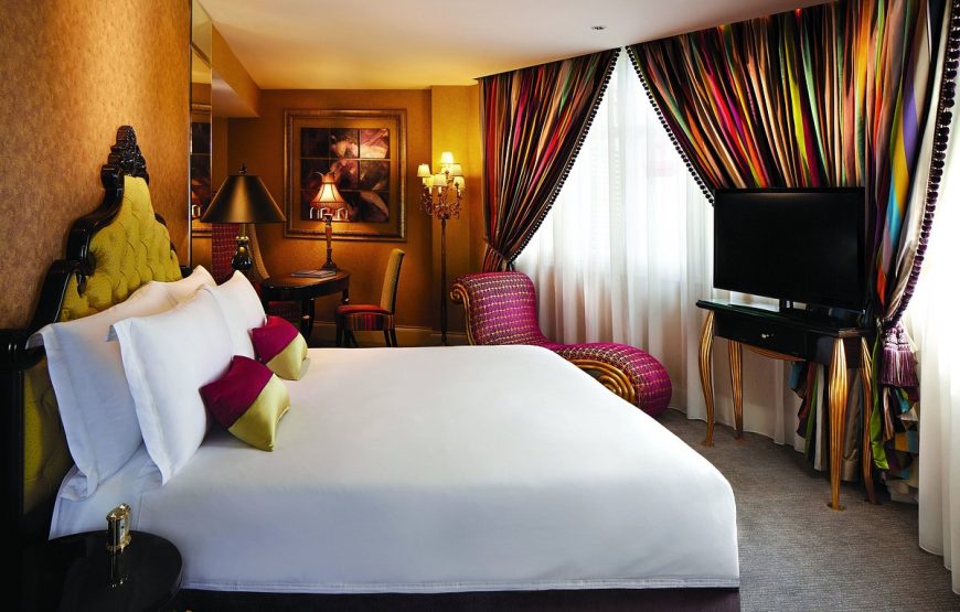 The Scarlet Singapore, Singapore’s first luxury boutique hotel, has made a bold statement, both locally and internationally, by preserving and combining the architectural styles of Singapore heritage buildings with a striking, audacious concept. Vivacious and uninhibited, the interiors of this 80-room hotel pulsate with an eclectic tension, offering all who enter an adventure for the senses. Using signature red and combining it with opulent gold and sophisticated black, the hotel decor’s provocative style is followed through in the rooms including 5 individually-themed suites, each with a tantalizing name – Splendour, Passion, Opulent, Lavish and Swank.