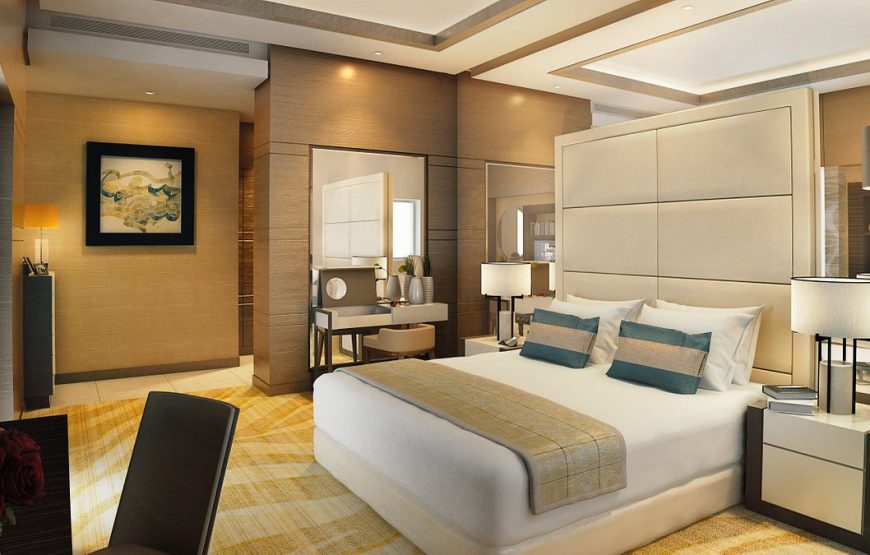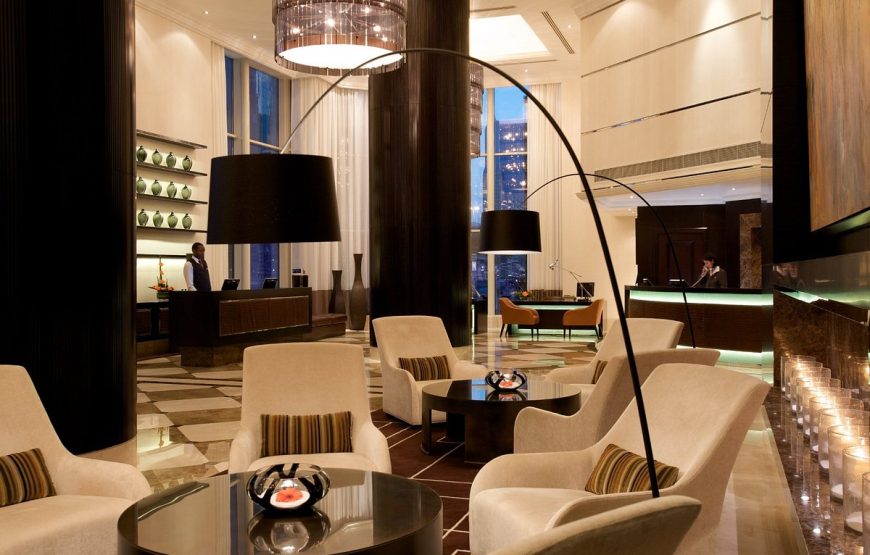 Conveniently located on Dubai’s prominent Sheikh Zayed Road, Towers Rotana boasts some stunning views of the Arabian Sea as well as easy access to all major destinations in the thriving metropolis of Dubai. Towers Rotana is situated adjacent to the Financial Centre Metro Station, a mere 4 kms away from Burj Khalifa (the tallest building in the world), 8 kms from the golden sands of the Jumeirah Beach front and 10 kms from Dubai International Airport. Towers Rotana offers 372 rooms, suites and apartments decorated with comfort and elegance in mind. Towers Rotana is home to the Award-winning fusion fine dining restaurant Teatro, the longest bar in the Middle East Long’s Bar, Award-winning all day dining restaurant Flavours on Two and lobby café, Wraps. Contemporary business facilities and 8 meeting rooms offer all the amenities needed to satisfy your requirements. The hotel’s recreation facilities includes Bodylines Fitness & Wellness Club, located on the top floor of the annex building, features an outdoor swimming pool with a sun terrace, a Jacuzzi, a fully-equipped fitness centre, steam and sauna rooms, and views of the coastal residential area, Jumeriah.