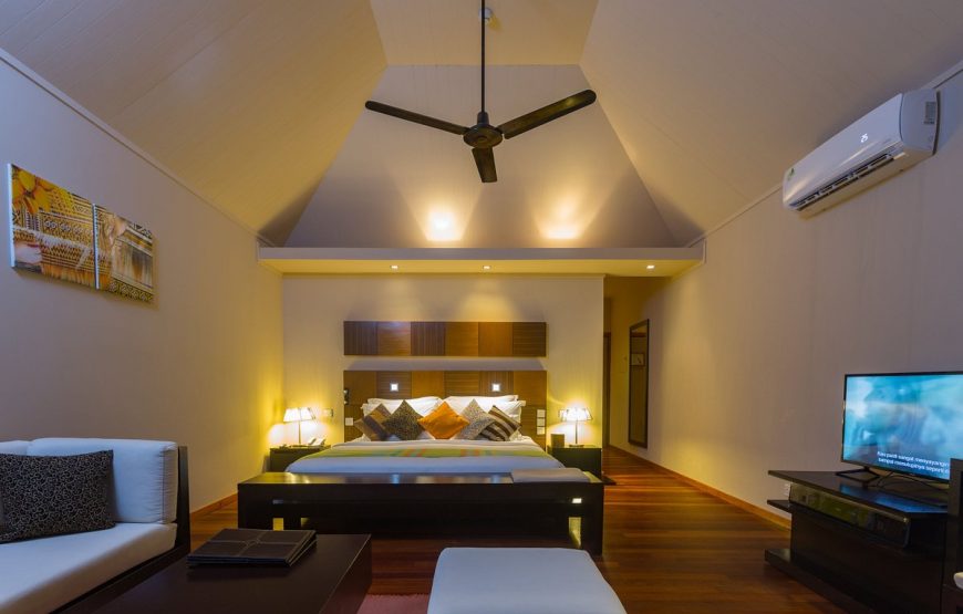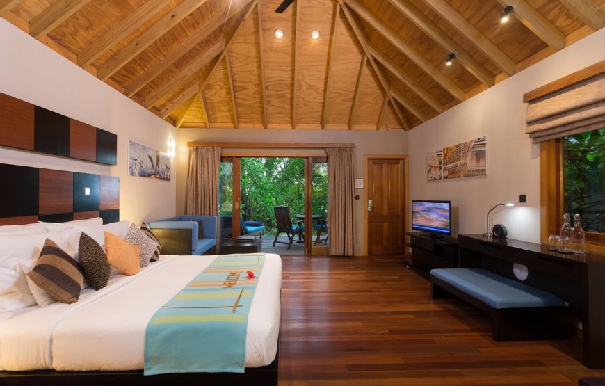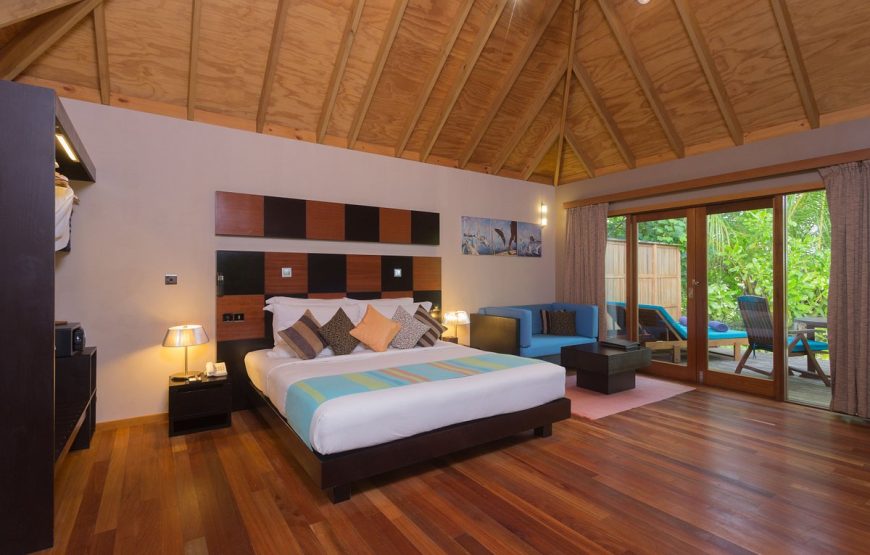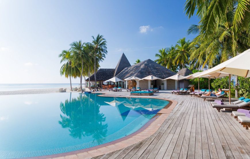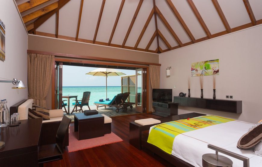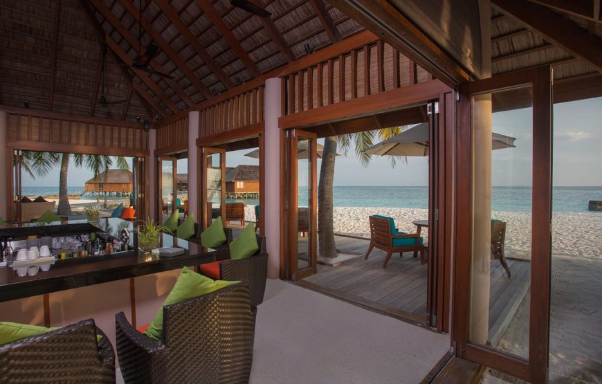 Veligandu Island Resort, surrounded by a beautiful lagoon, an excellent house reef and long stretches of white, sandy beach, is the only resort on the island of Veligandu, North Ari Atoll. It is 600 meters long by 150 meters wide, about 22 acres. Your seaplane transfer from Velana International Airport is a scenic, 20 minute flight. The 91 rooms include 54 Jacuzzi Water Villas, 10 Water Villas, 16 Jacuzzi Beach Villas and 11 Beach Villas. Veligandu will accommodate guests of all ages in the Beach Villas & Jacuzzi Beach Villas and only guests of age 12 years and above in Water Villas & Jacuzzi Water Villas.
